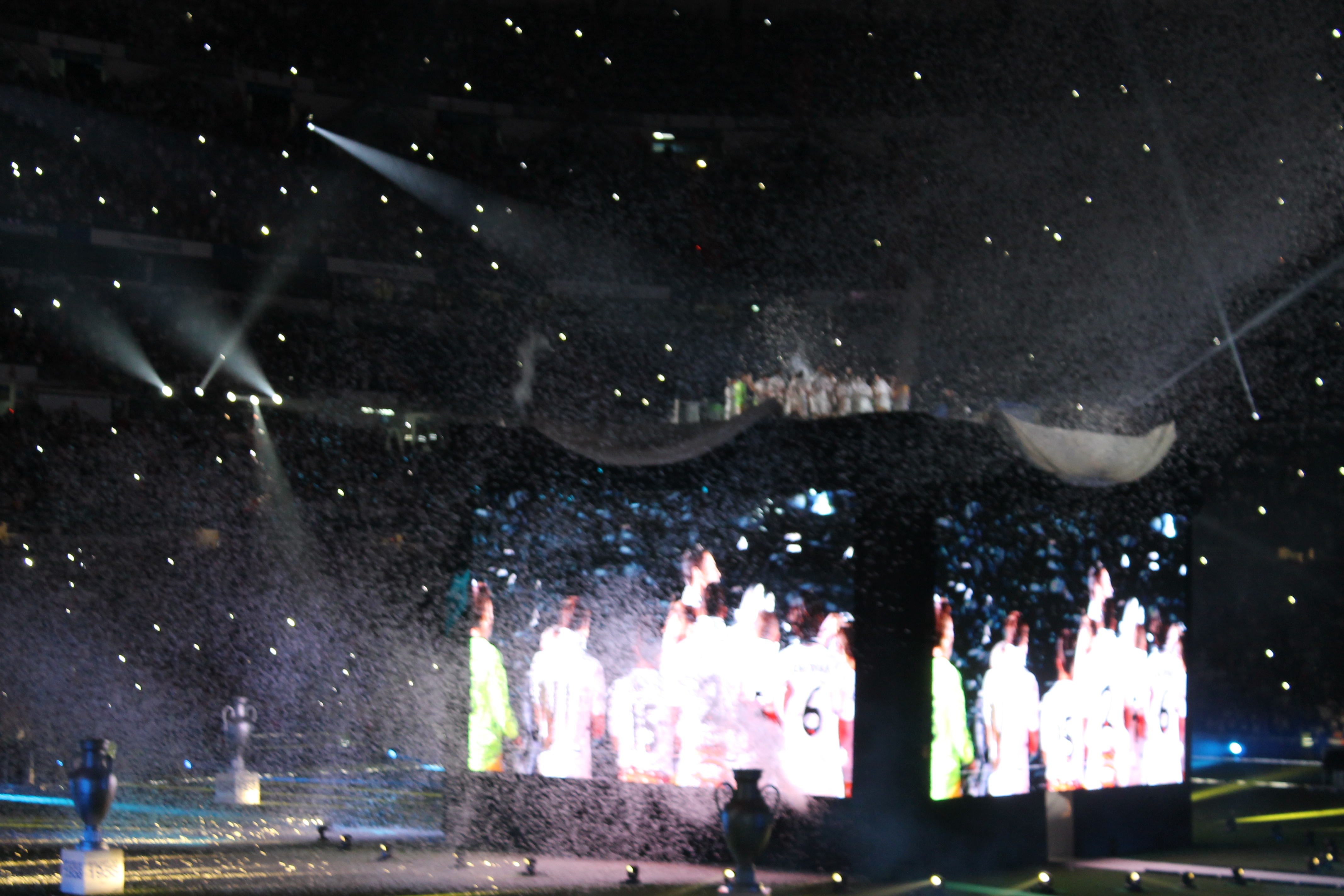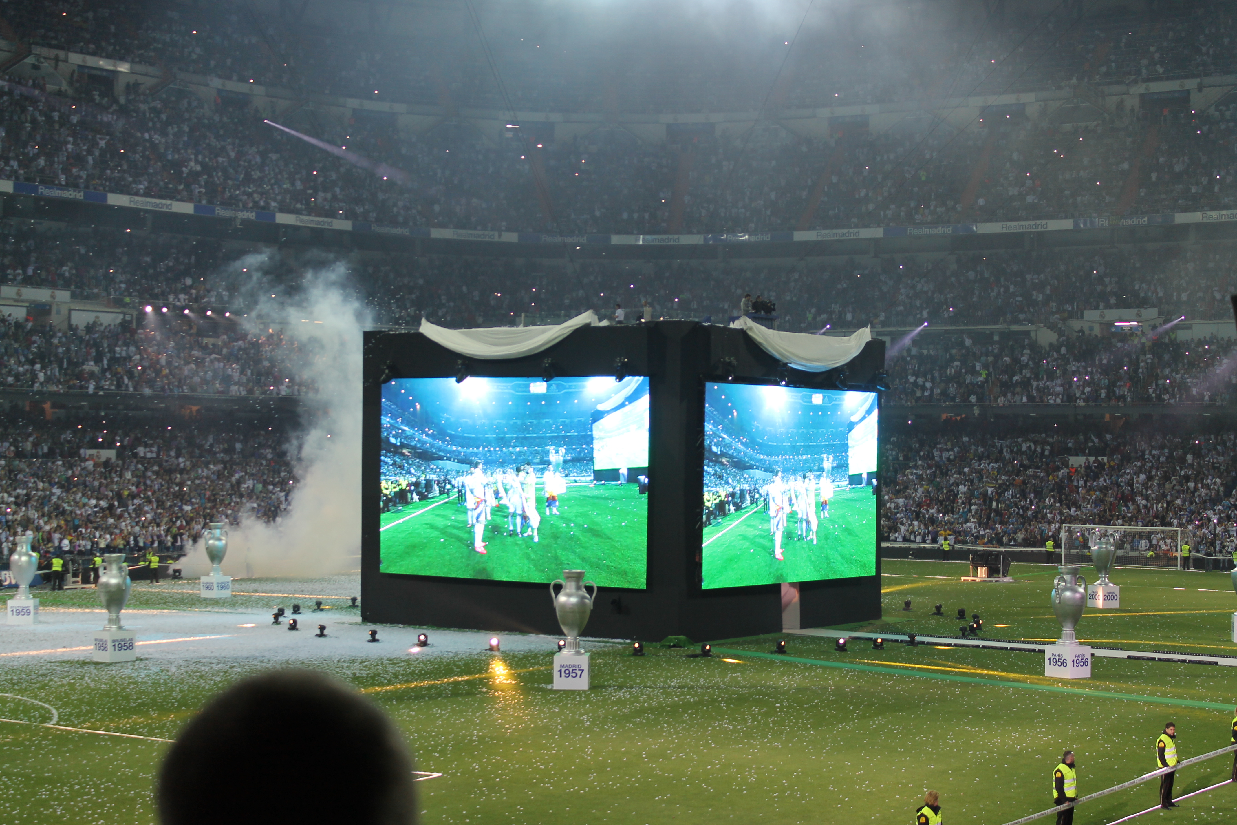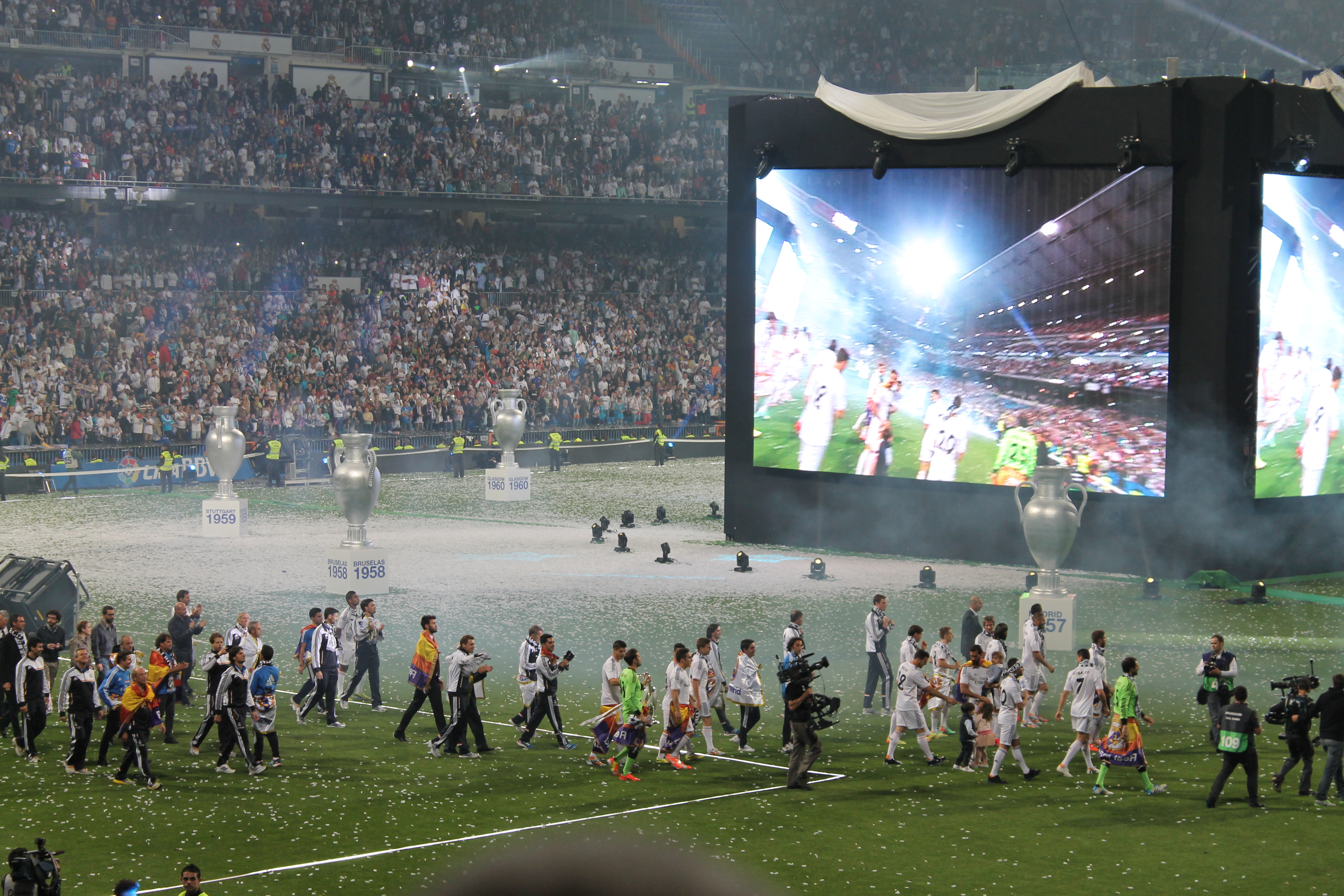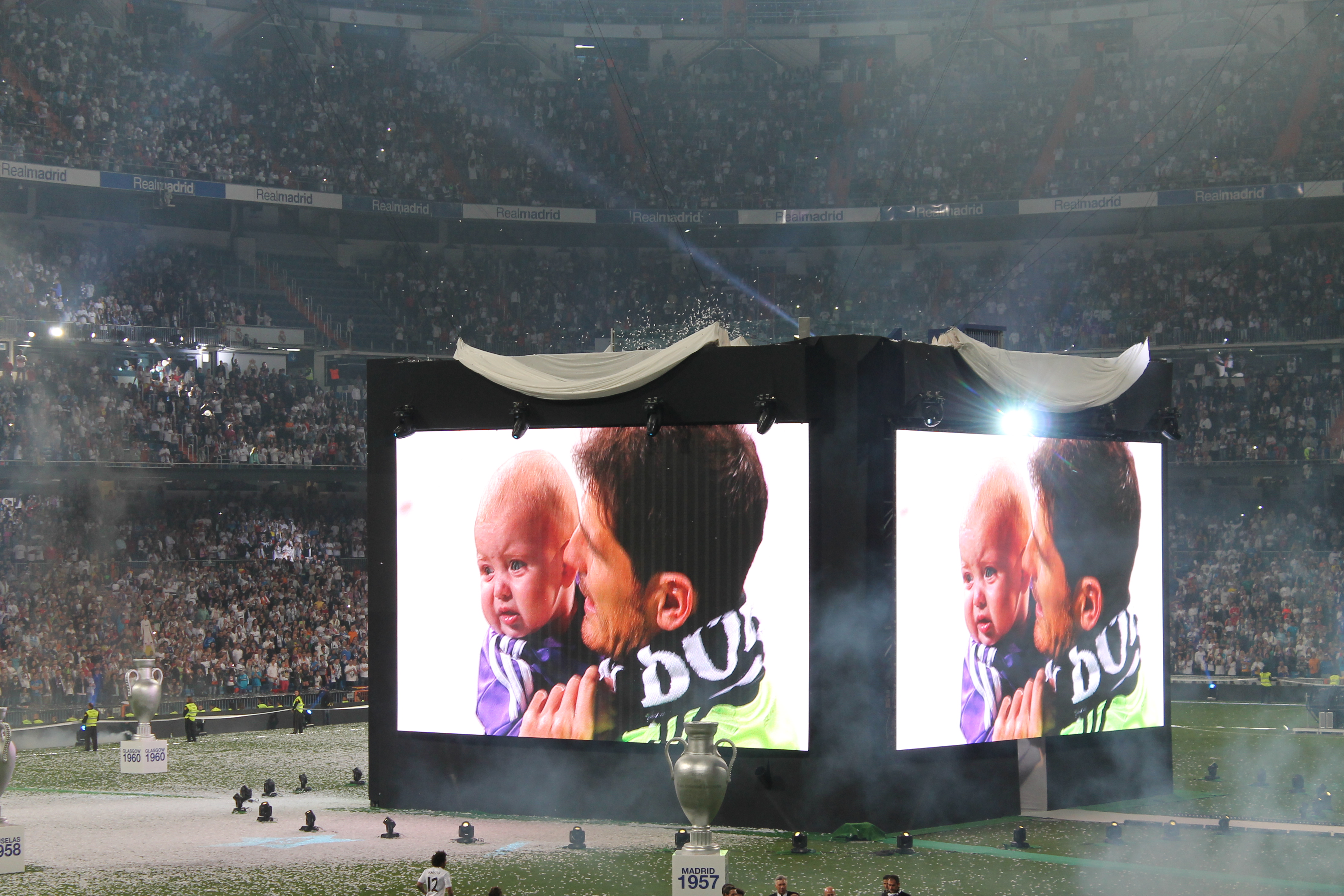 Lo que más me llamó la atención fue ver la cara de ilusión de los hijos de los futbolistas. Algunos como el pequeño Martín lloraba porque no sabía por qué toda esa gente gritaban el nombre de su papá. Cuando lo vea dentro de 10 años fijo que llora otra vez, pero de la emoción. Otros como los hijos de Arbeloa y Xavi Alonso correteaban y cogían los papelitos blancos. Los tiraban a sus hermanos, cuales bolas de nieve. Incluso llegaron a jugar a penaltis y se meaban de la risa.