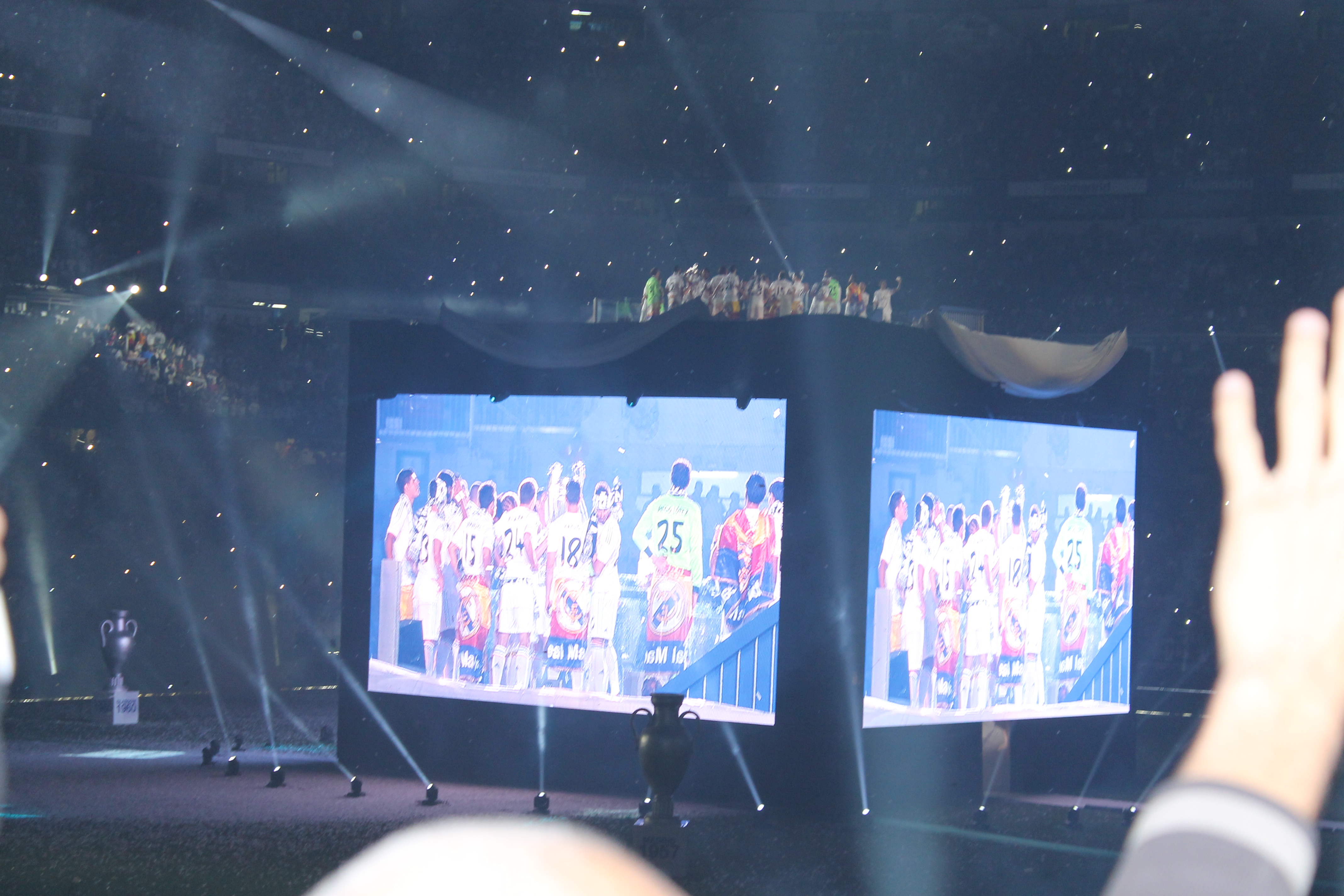 Pues eso, ahí estaban los jugadores en el campo. Enfocaban la cara de Casillas y alguna lagrimilla se le caía… porque aunque ellos sean “estrellas” e “ídolos” de muchos; son personas como tú y como yo. Con una familia y unos sueños por cumplir. Se respiraba buen rollo, felicidad y sobre todo satisfacción porque habían conseguido su sueño. LA DÉCIMA. Se dice rápido pero yo, que ni siquiera me lo esperaba, viví una celebración histórica y esto bien se merece una entrada.